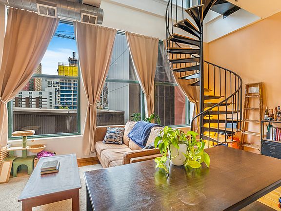 One-of-a-kind two story duplex loft with floor to ceiling windows! The spiral staircase leads you to the private primary suite & second entrance. Located in highly sought after Printers Row in the South Loop! Hardwood floors, tons of natural light, 2 separate entrances, white cabinetry, black appliances with brand new dishwasher & soaring ceilings. You will not find a better loft than this in the area! This location has it all!!! Printer row is known for its hip restaurants & bar, convenient boutique stores & central city location. Steps to all public transportation, grant park, millennium park & Chicago's lakefront. Many parking options nearby for rental. A parking garage is located next to the entrance of the building. The building features a very nice laundry room. The unit includes a large storage locker. This will not last long! Please note you can not install a washer dryer in the unit.