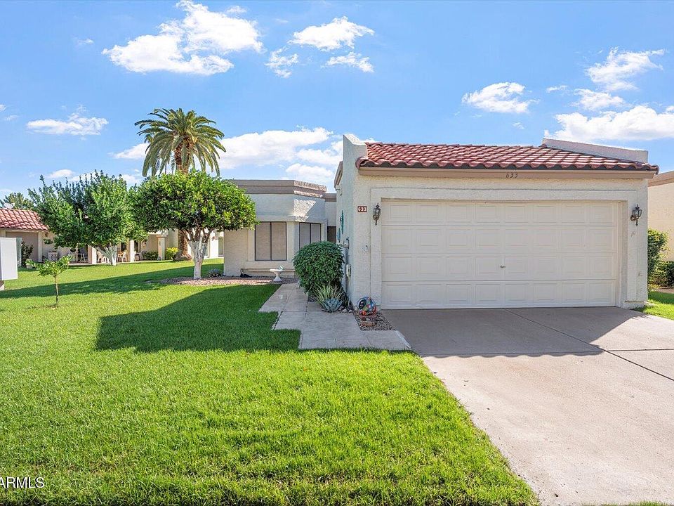 Step into this fully furnished, move-in-ready 2-BD END-UNIT condo in the highly sought-after active adult gated community of Fountain of the Sun! This PET-FRIENDLY home with a NEW ROOF (2023) is ideally located just steps from the community pool.