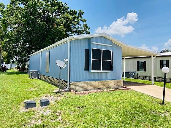 This home is in a 55 plus community with a monthly lot rent of $492.69. So many possibilities and so many plusses with this 2 bedroom 1 and 1/2 bath home. You'll have piece of mind with your new metal roof and new pan roof over your shed along with your new hurricane shutters and new gutters. A new water heater was recently installed and relocated into the shed. New shower enclosure with easy step in entrance. The home offers wood laminate throughout along with a new sink and countertops in the kitchen. The A/C was replaced in 2020 so you get the remainder of the warranty. Recently painted both inside and out so bring your furniture and decorate to your taste and call this house your home. This highly sought after park offers a heated pool, jacuzzi, tennis, shuffleboard, a boat dock, an 18 hole golf course, a fitness room, library and many planned activities. While all information is considered reliable, we encourage prospective buyers to conduct their own personal inspections for a comprehensive understanding of the property's condition and measurements. Please note that American Mobile Home Sales of Tampa Bay Inc. cannot guarantee the accuracy of this information. As a buyer, you will be responsible for all closing costs, sales tax, and title transfer fees associated with the purchase. The buyer assumes full responsibility for obtaining all current rates for lot rent, fees, and anypass-on costs, as well as to familiarize yourself with the lease agreement and community regulations. For these details, please reach out to the community orpark manager directly. American Mobile Home Sales of Tampa Bay Inc. is no tresponsible for quoting said fees or policies.