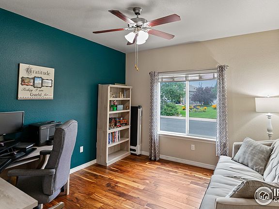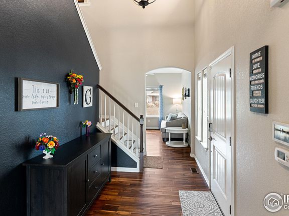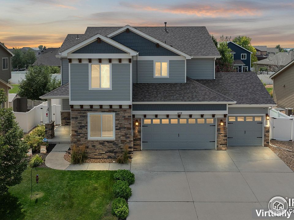 Gorgeous 5 bedroom, 3.5 bathroom home with full finished basement in prime location in Peakview Estates! Set in a quiet cul-de-sac, this pristine home boasts Acacia hand scraped engineered hardwood flooring throughout and tile flooring in the bathrooms, mudroom, and laundry room. The first floor includes a large great room with gas fireplace, front room currently used as an office but could also be used as a formal living room or play room, half bathroom, dining room, gourmet kitchen with duel fuel range with 6 gas burners and two electric convection ovens, granite counters throughout, stainless steel appliances, custom cabinets, and pantry. Large mudroom with custom built-ins off of the dining room and an attached over-sized 3 car garage. Huge second floor master suite with double sided gas fireplace, trey ceiling, 5-piece bath, and walk in closet makes it feel like a luxury retreat. Three additional bedrooms plus a laundry room and full bath complete the second floor. Finished basement includes large family room, bar, bedroom, full bath, and storage room. Beautiful landscaping with irrigation system, patio, 6 foot high privacy fence, and storage shed. Brand new elementary school in walking distance in the neighborhood, plus two parks, a greenway trail with access to Windsor Lake, and walkability to downtown make this a great family home.