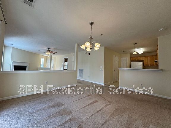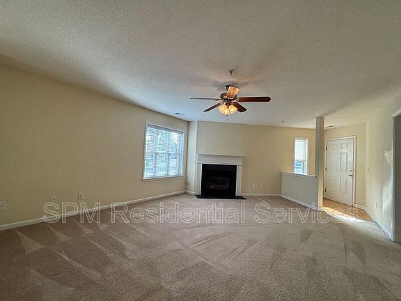 - Spacious living room with natural gas log fireplace and ceiling fan