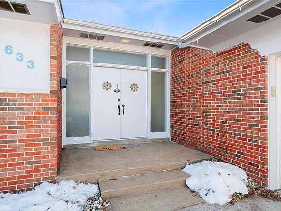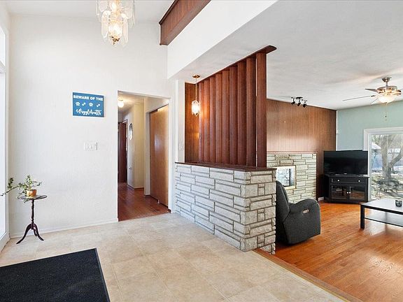Well-maintained 3-bedroom, 2-bath brick home with a large garage and fenced yard. The kitchen features custom cabinetry with roll-out drawers, built-in double oven, a breakfast bar, and all appliances stay, including the washer and dryer! Cathedral ceilings in the foyer, dining room, and kitchen add openness and allow plenty of natural light to fill the space. The sunken living room boasts a cozy wood-burning fireplace and provides direct access to the spacious patio and fenced backyard with newly planted apple trees. The home also features beautiful new sliding doors in both the dining room and living room. Ample closet and storage space are available throughout. This home has already passed the city occupancy inspection and is move-in ready!