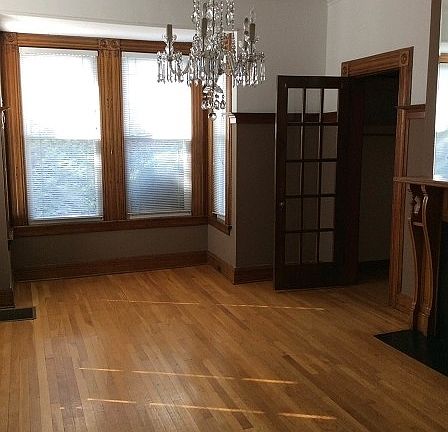 Close to train, bus, shopping & restaurants. First floor, lovely, spacious 2 bedroom apt. Large LR & DR, eat-in kitchen, office, hardwood floors,decorative fireplaces, Tons of space! Not your typical apartment living. Massive Master bedroom features dual walk-in closets. Beautifully maintained hardwood floors, gorgeous woodwork. Entire unit will be professionally cleaned. Newer flooring in kitchen. Bring your suitcases, ready to move in! Use off laundry room in basement. Enjoy sitting on the front porch, parking for 2 cars in rear. OWNER PAYS HEAT AND HOT WATER. WINDOW A/C included. No pets. No Smoking.