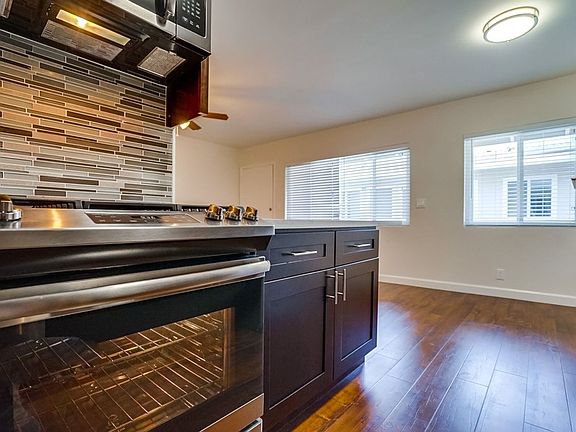 Modern bath fixturesGated parkingCovered parking spotHardwood floorsGranite kitchen countersHardwood cabinetsCeiling fans