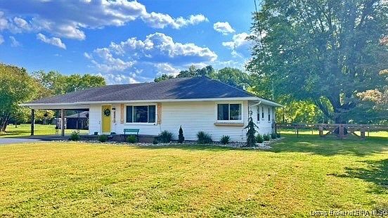 Don’t miss out on this cute home sitting on a ½ Acre right in the heart of Borden! This 3 BR 1 Bath Home with Unfinished Basement Features a Beautiful Completely Remodeled Kitchen in 2022 with Plenty of Cabinets, Quarts Countertops, Tile Flooring, AND Stainless Steel Appliances. You’ll Love the Hardwood Floors throughout the 1200 SF Home. The Bath Also Remodeled in 2022 Features a tiled Tub/Shower, Tile Floors, New Vanity and Accent Wall! The Back yard is fully fenced and comes complete with a beautiful Shade Tree! There is plenty of parking in the newly sealed Driveway with pull off & Double Carport Area. Don’t forget the Detached Garage/Pole barn with concrete floor for storage or a workshop! The Unfinished basement is ready for your personal touch! Propane take is owned. Call Today to view your next home!