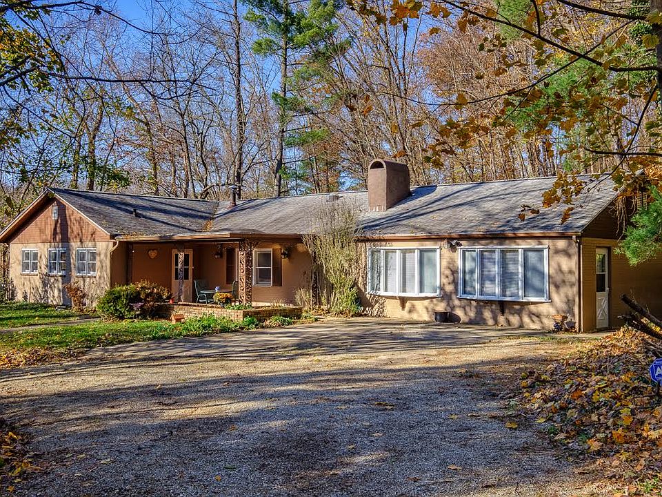 Large 4-bedroom, 2 baths single-story ranch nestled in the woods, just outside of downtown Logan. One and a half wooded hillside acres. Approximately 2,600 sq ft home (with no stairs) offers a spacious 30x15 living room with a wood-burning fireplace and skylight, dining room with wooded hillside view, and kitchen with Corian counters and all updated stainless steel appliances. Ceiling fans in most rooms. 3 of the bedrooms branch off the main area, including a 25 x16 King-sized master suite with 8 windows and a private full bath. Large, sunny mother-in-law suite or family room is on the other side of the home, with a wall of windows, a bedroom, and its own entrance. Skylights, built-in shelves, easy-access laundry nook, covered 10x20' front porch, walk-up attic, large backyard shed, private drive, installed ADT security, and just a short walk from downtown. Owner-occupied. Contact to schedule a showing. 614-893-9514, may text.