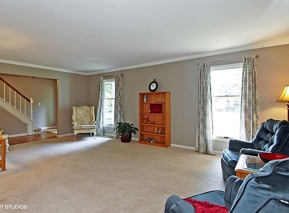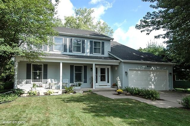Room to roam in this spacious 2 story family home on a quiet cul de sac street. Big windows fill this home with light. Freshly decorated through out, this home is in move-in condition with beautiful hardwood floors in the entry, kitchen, breakfast room and family room. Kitchen has lots of cabinets and a pantry closet. Front and rear covered porches for summer enjoyment. Rear paver patio overlooks the secluded back yard. You will be impressed with the size of the bedrooms and closets in this home! The sky-lit master bath has a separate tub and shower. Formal living room and dining rooms plus a 1st floor laundry that has a deep sink, folding counter and storage closet. Refrig, washer, dryer hi-eff furnace and central ac all new since 2012, most ceiling light fixtures replaced in 2015. Clean full basement is perfect for expanding your family living spaces. Wood Ridge Ct is uniquely located near Creekside Elementary School and surrounded tall trees in every direction!