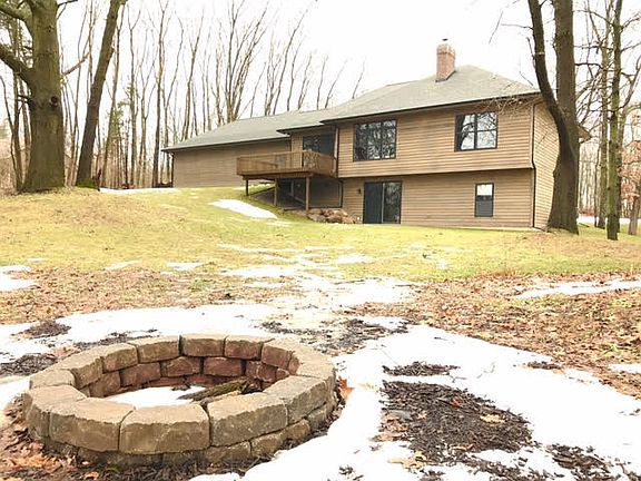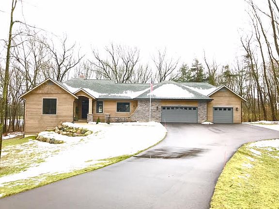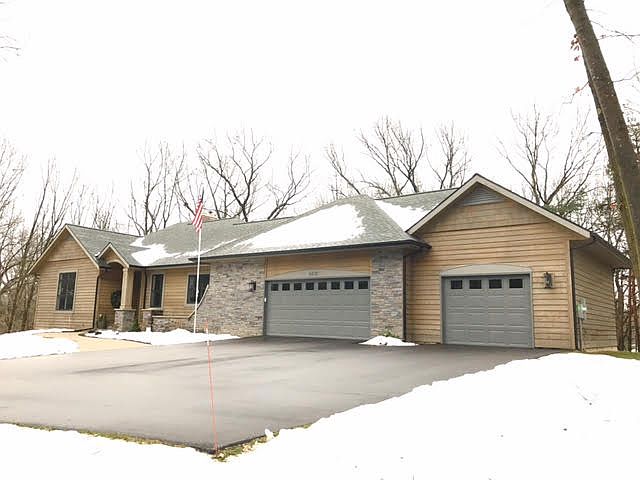 Custom built cedar and stone veneer walkout ranch in beautiful Ada setting. Open floor plan with 4 bedrooms, 3 full baths including a master suite with a tile euro shower, tub, dual vanity and walk-in closet. Hardwood and tile floors on main level with granite counter tops throughout. Living room features stone masonry fire place and dining room offers walkout to large deck. Kitchen features easy close custom cabinetry, stainless steel appliances, and eating area. Custom mudroom at garage entry and spacious laundry room with stainless sink is family friendly. Walkout lower level has finished family room featuring a second masonry fire place plus plenty of storage. Three stall garage, wooded private lot, and crisp neutral color palette.