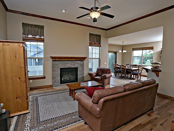 Beautiful home in Falcon Ridge. This inviting home features main level hardwood floors, gas fireplace, dining room w/ access to the patio, kitchen w/ quartz counters, large laundry room & 2 bedrooms, including a master suite w/ tiled shower, double sinks & walk-in closet. The basement features a huge family room, 2 bedrooms, full bath & storage room. Take time to relax on the front porch or back patio in the spacious fenced yard. Ample storage in the house or in your 3 car garage!