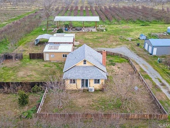The property features around 3.5 acres of almond trees, offering a peaceful rural setting. An additional building could provide additional storage, tack room, or with some sweat equity it could be converted into a comfortable mother-in-law unit to suit your needs. There is a 4-car workshop with roll up door. A newer metal double-door garage provides a place to park your cars and/or toys. A hay shed and pole barn are also available for storing equipment or animals, with the property partially set up for horses.