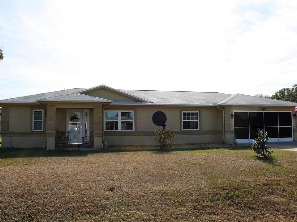 Beautiful hardwood floors in main living areas. This charming Meadowlark model home is located a 55+ Community of Cherry Wood. Home features 2 bedrooms, 2 baths, 2-car garage, split bedroom floor plan, HVAC (2011), Roof & Windows (2013), large enclosed Lanai (2013) and inside Laundrywith additional cabinets, vinyl flooring in all wet areas and much more! Tasteful landscaping and a front entry under roof welcome you to the home. Enter the home and you find Living Room area toward the back is the Dining area. Left of the Living Room is the Master Bedroom, nice walk-in closet; Master Bath has a dressing area with vanity/sink area and pocket door leads to step-in shower. Right of the Living Room is a private hallway leading to Guest Bedroom and Guest Bath with tub/shower. The Kitchen i