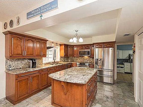 Stately, beautifully maintained 4 bed/ 3.5 bath + den home located in gated community of Kings Bay. Separate in-laws' suite w/ ensuite bath, private entry, & access to the backyard. Home features formal living & dining rms. Expansive family rm. Marble tile. Updated kitchen w/ granite countertops, ss appliances & breakfast nook next to the kitchen. Spacious master bdrm. Lush, private backyard w/ heated pool, hot tub, partially covered patio & tiki hut, perfect for entertaining. Access to marina.