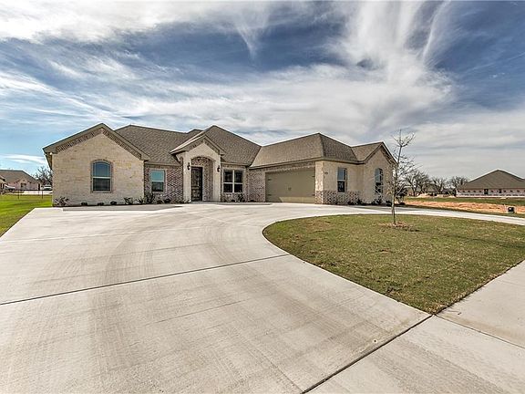This new build home has all the extras. Circle drive is first thing you will notice. Lots of room inside and very roomy kitchen with island for entertaining. This home has large closets, big pantry in kitchen, and will be wonderful as a four bedroom or use extra bedroom as office, with beautiful wood work on ceiling in office area. Pecan newest neighborhood is ready for you to move in and just in time for Summer fun. Many upgrades for energy efficiency. Landscaped with grass and flower beds.