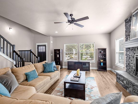 Move in ready. This home features a coveted main level bedroom with ensuite that offers a large tile shower, soaking tub and walk in closet. Perfect for entertaining with great room floor plan. Floor to ceiling stone surround fireplace and a large gourmet kitchen equipped with under cabinet lighting, full height tile backsplash and a large island for your cooking delight. Spacious upstairs bedrooms with vaulted ceiling and custom built ins. Low maintenance fully landscaped front and back yard with fencing. Plenty of extras! Hand textured walls, A/C and two water heaters are just a few. Lightly lived in. Close to schools, river trails and shopping.
