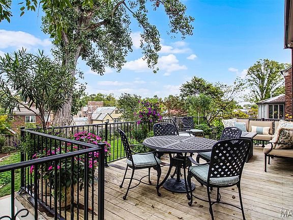 Steps from Forest Park: Classic 1930 Tudor Revival in Clayton’s Ellenwood Subdivision combines timeless architecture with thoughtful updates. 4,316 sq. ft. of elegant living includes four bedrooms plus a private den/office and an upper-level suite ideal for guests, teens, or creative use, along with three full and two half baths. Every space adapts easily to the way people live and work today. The traditional floor plan offers defined rooms that flow naturally, with a family room opening to a deck and a large, landscaped yard. The kitchen, renovated within the past five years, features an induction cooktop, double ovens, Sub-Zero refrigerator, and built-in banquette. Upstairs, the primary suite includes an updated bath with soaking tub, walk-in shower, and double vanity; additional bedrooms share a Jack-and-Jill bath. The third floor offers flexible space for guests, work, or play. The lower level provides a casual gathering area, laundry room, half bath, and two-car garage. Within a block of Forest Park and located in Captain Elementary, this home pairs 1930s craftsmanship—slate roof, leaded-glass windows, and ornate plasterwork—with the comfort and versatility of modern living.The kitchen, renovated within the past five years, features an induction cooktop, double ovens, Sub-Zero refrigerator, and built-in banquette. Upstairs, the primary suite includes an updated bath with soaking tub, walk-in shower, and double vanity; additional bedrooms share a Jack-and-Jill bath. The second floor bedrooms have custom built-ins and the closets throughout the home are custom organized. The third floor, originally designed as a suite for two teens, now offers ideal space for kids, guests, creative pursuits, or a quiet retreat. The lower level provides a casual gathering area, laundry room, half bath, and two-car garage. The slate roof was replaced approximately 25 years ago. Within a block of Forest Park and located in Captain Elementary, this home pairs 1930s craftsmanship—slate roof, leaded-glass windows, and ornate plasterwork—with the comfort and versatility of modern living.