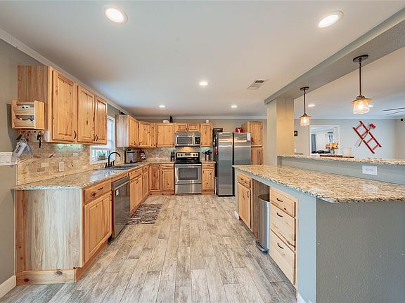 This stunning one-story home situated on over 13 acres, offers a beautiful country setting that is a must-see. The entire home has been completely remodeled with-new flooring (wood-look tile), cabinets, granite countertops, appliances, paint, much more. The master closet is the size a small bedroom and comes with built-ins. The split floor plan features large bedrooms and an updated secondary bathroom. The gated entrance access to all the space you need, just a short walk to Cedar Creek Lake. The property is fenced along the road and north property line. Motivated seller. Bring your buyers.