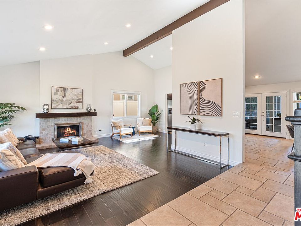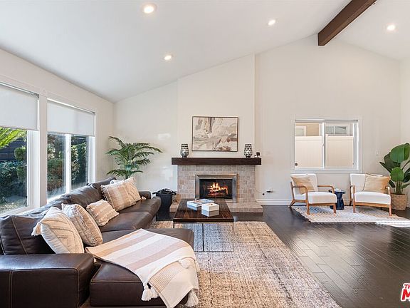 Mid-Century Inspired Retreat in Tarzana... Nestled on a quiet cul-de-sac in one of Tarzana's most sought-after, family-friendly neighborhoods, this mid-century inspired 4-bedroom, 2-bath home offers the perfect blend of timeless design and the relaxed California lifestyle. Step inside to discover bright, spacious living areas with clean architectural lines and thoughtful updates. The inviting living room features a striking vaulted ceiling and cozy fireplace, creating a warm, open space ideal for formal entertaining or quiet evenings at home. The modern kitchen showcases stainless steel appliances, a farmhouse sink, and ample counter space. The main floor includes a large primary bedroom and bath, perfect for guests or convenient single-level living. Upstairs, two additional bedrooms share a full bath and open onto a spacious second-floor patio, perfect for morning coffee, sunset cocktails or evening gatherings. Outside, the secluded backyard is a true highlight: Giant cypress trees set off a sparkling pool, creating a private oasis ideal for relaxation and summer barbecues. Beautifully landscaped throughout and set in a peaceful neighborhood close to parks, local shops, and dining, this home also enjoys close proximity to SOCES the Sherman Oaks Center for Enriched Studies, one of the area's most highly respected and sought-after schools. Combining mid-century charm, modern comfort, and an unbeatable location, this Tarzana gem captures the best of Southern California living. Note: "4th Bedroom" is a "Bonus Sunroom," currently used as an office with separate AC unit; does not currently have a closet, but could be converted.
