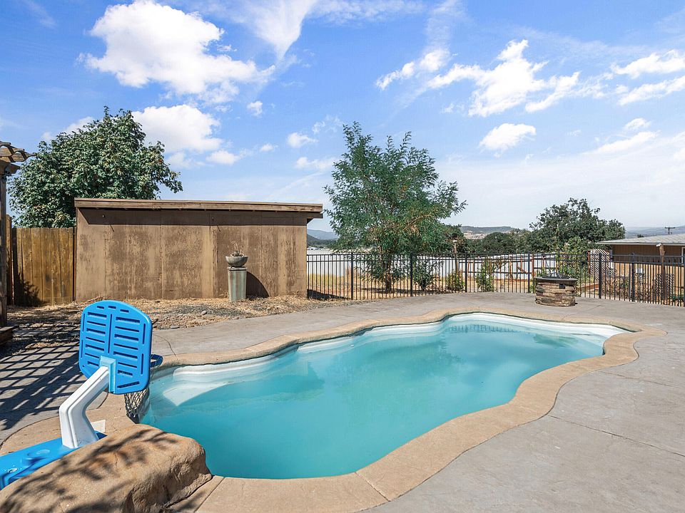 Usable acreIn-ground poolPrivate retreatMultiple shedsFresh updatesCovered patioMove-in ready