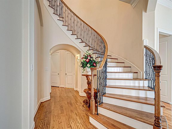 6331 W Mystic Meadow is located in the gated Hermann Lake. Easy commute to the TMC& Hermann Park. This 3 BR, 3.5 B home w/optional gamerm/4th BR w/ensuite bath, boasts a spacious floorplan w/open living, kitchen, breakfast on the 1st FL all enjoying views of a private patio & yard w/tranquil sounds of Hermann Lakes fountain. Light filled dining room is welcoming. Hardwoods are throughout the 1st floor. The kitchen boasts granite counters, amazing storage & counter space, gas cooktop & stainless appl. A gorgeous staircase leads to the 2nd FL featuring a primary w/generous sitting area, master bath equipped w/2 sinks, separate tub & shower w/2 master closets. 1 master closet is huge! Outside the master is a hospitality area w/counter space & mini fridge. 2 add'l BR & Hollywood bath are nearby. The 3rd FL can be used as a gamerm or 4th BR. The full can serves either. Amazing storage! BONUS-a coveted extra parking space next to the home! $150/month sewage and water. Per Owner