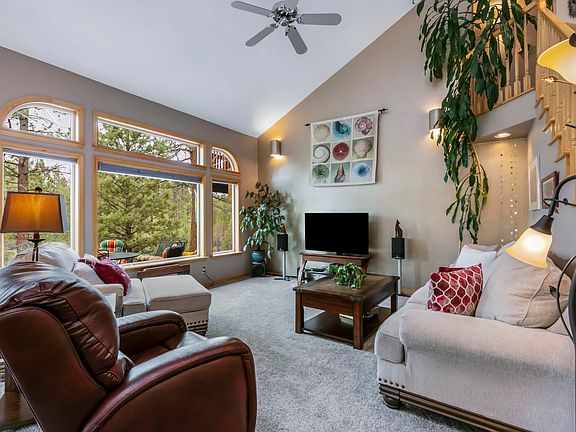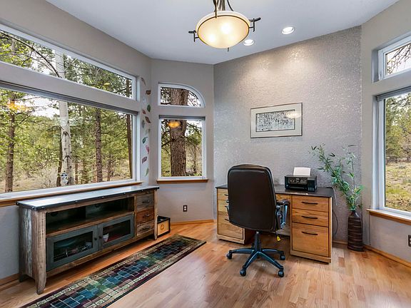 The lifestyle of Bend is wrapped up in this home beautifully situated on secluded 9.34 acres. Only 1 mile away from Shelvin Park and 10 minutes to downtown and Bend's activities. A paved driveway winds to the home's attractive landscape adding serenity to this well-cared for home. Upon entering, natural lighting is captured through the windows that overlook picturesque views of treetops, the ridgeline and canyon within the property. High-end fixtures and finishes are featured in the updated kitchen and primary jaw-dropping bath. Enjoy in-floor radiant heating throughout the home. 2 additional bedrooms are situated on the main level along with a utility room with ample storage. The oversized 2 car garage has a workbench and excess storage - perfect for tuning bikes or waxing skis. Year-round entertaining possibilities are endless. Enjoy lunch al fresco and soak up the sun on the spacious deck. This fantastic property is uniquely secluded yet adjacent to the Saddleback neighborhood.