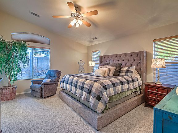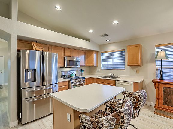Welcome to this beauty tucked away in Cantabella of Ventana Ranch. Inside you'll find pride of ownership with beautiful, custom recent porcelain tiled floors & 4-inch baseboards, recent carpet with memory foam pad, & stylish two-tone paint thru-out. This spacious floorplan offers room for everyone with 3 bedrms, 2 full bathrms, a separate laundry rm, 2 living areas, a formal dining room, & an open kitchen that flows into the family room with a cozy gas fireplace with a flip of a switch, so you can enjoy all year round. Step outside to your private pack patio, complete with a built-in hammock-perfect for enjoying quiet mornings, relaxing evenings, or even watching the hot air balloons float by from time to time. Enjoy access to a private pool for residents, nearby parks, dog park, trails.