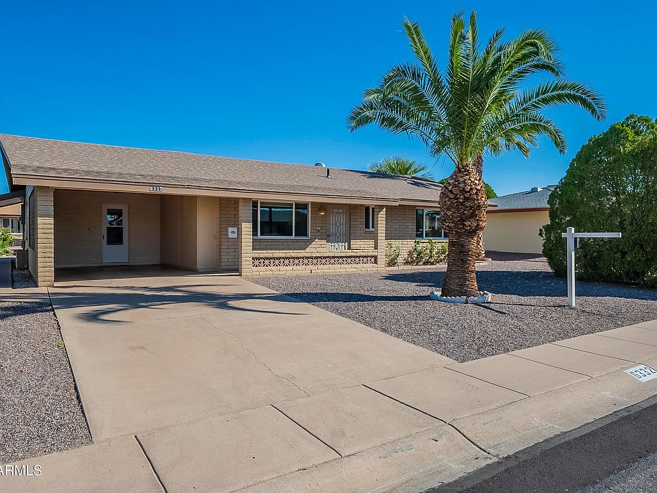 Welcome to this cute and cozy updated home in Mesa's sought-after Velda Rose Estates. Step inside to find a bright kitchen with updated cabinets and countertops, plus tile flooring throughout for easy maintenance. Both updated bathrooms feature beautiful tile walk-in showers and floating vanities, designed for comfort and accessibility. This home also offers a large Arizona room with AC, perfect for relaxing year-round, and a spacious utility room with a convenient wash basin. Outside, you'll love the backyard retreat with fruit-producing trees like tangerine, grapefruit, orange and blood orange. A nice sized storage shed and carport with built-in storage cabinets add even more functionality. Residents of Velda Rose Estates enjoy access to two clubhouses and two sparkling community pools with spas, making it easy to stay active and connected with neighbors.