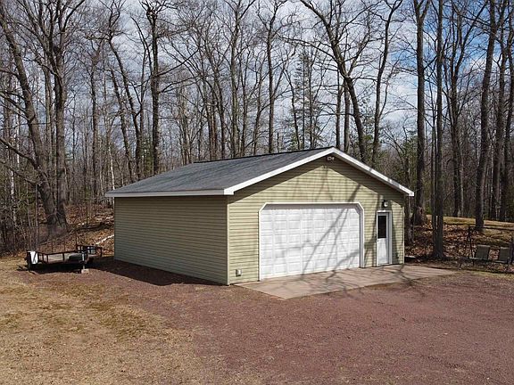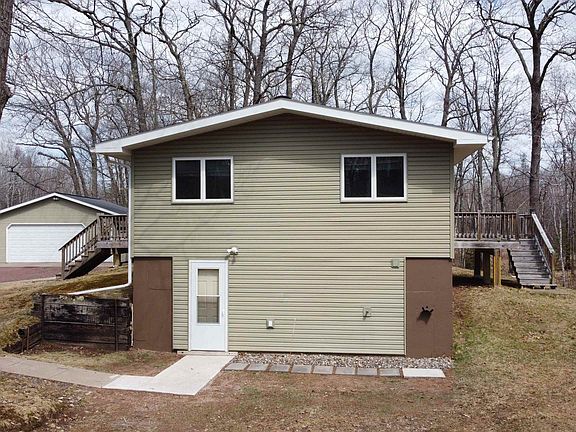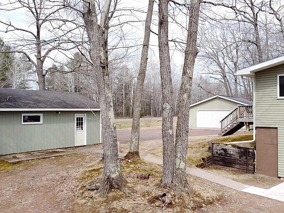 Here is a rare find in the Maple School District! This 3 bedroom, 2 bath home is located on a great 10 acre parcel filled with white oak trees and is conveniently located close to the Village of Lake Nebagamon. This home features a great layout with main floor living room, dining area, kitchen, bathroom and spacious 3 bedrooms. The kitchen has a unique layout with a door leading to the large rear deck for grilling and relaxing in the sun while overlooking the beautiful rear yard and wildlife pond. The lower level is a walk-out and offers a den/rec room that could be easily converted to another bedroom with the installation of an egress window. The large utility area offers laundry and lots of storage. You will appreciate the split a/c / heating system for those hot days and cool nights. There is a 3/4 bath also! Step outside and you will appreciate the multiple detached garages providing plenty of room for your vehicles, equipment, toys or make room for a workshop! Storage shed is not included.