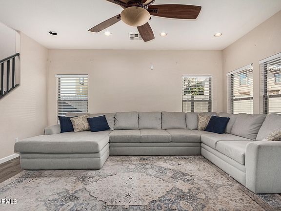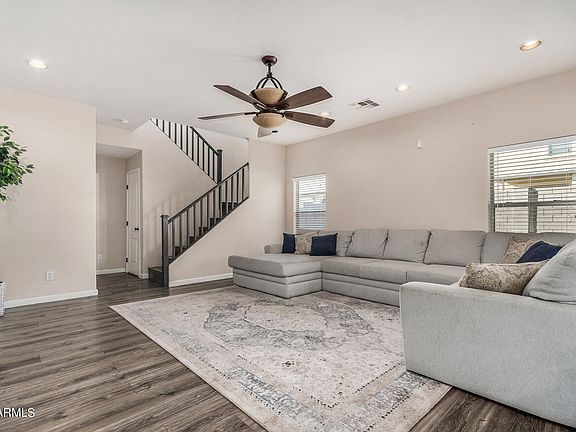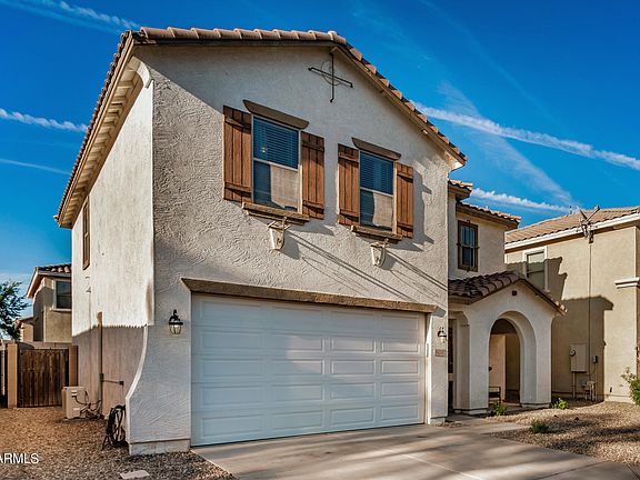 Delightful 2-story home searching for a new owner! A 2-car garage, cozy front porch, and easy-care desert-style front yard awaits. This open concept but smooth & neutral interior gives a homey feeling to everyone with its wood-look floors, recessed lighting, and powder room. The eat-in kitchen is equipped with stainless steel appliances, sleek backsplash, shake cabinetry, a pantry, and wide granite counters. Enjoy the spacious main retreat offering plush carpet, a walk in closet, and ensuite w/a dual sink vanity. Enjoy your siesta at the private backyard boasting a covered patio, well-laid pavers, and artificial turf.