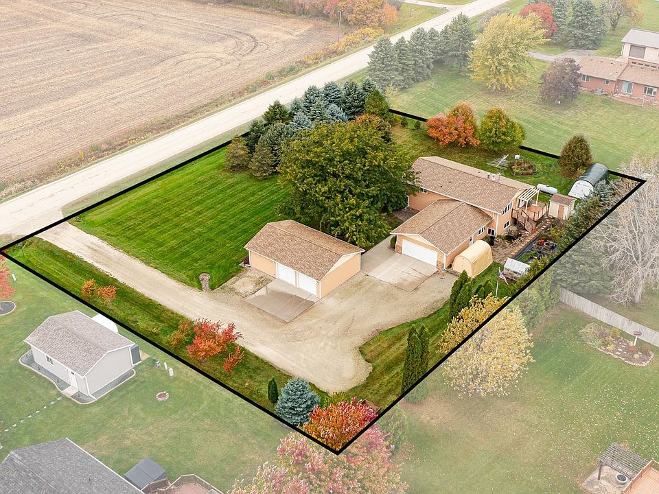 Beautiful 5 bedroom, 2 bath split located on 1 acre on the edge of town with endless views. Enjoy the updated kitchen with quartz countertops, backsplash and stainless steel appliances. 3 bedrooms on the main level. Recent bathroom remodel with whirlpool tub and heated tile floors. Large living room with wood fireplace. Spacious lower level family room, another updated bathroom with tile floors and sauna. Enjoy the 5 car garage, deck, patio, fabulous landscaping, mature trees and new roof!