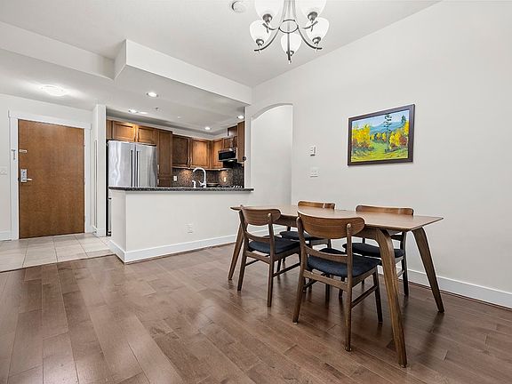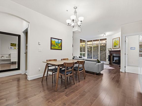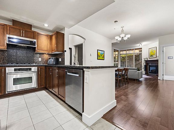 Cozy electric fireplaceGranite countertopsStainless steel appliancesHardwood flooringPrivate patioTreelined streetLush greenery