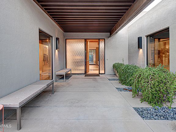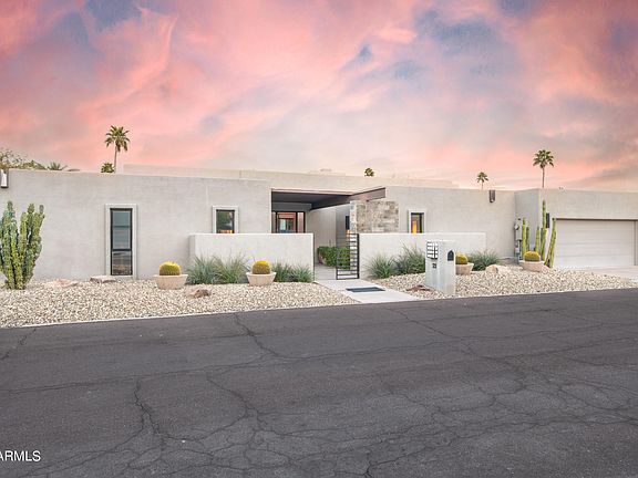 Quiet sophistication sets the tone for this expansive 3 bedroom resort home. Fostering a love of modern architecture, art and design, this understatement of luxury combines elegance with relaxation. Nestled in a quiet gated resort neighborhood with only 29 homes, this modern single-level lock and leave with no steps features an open floor plan, vaulted beamed ceilings, gourmet kitchen w/ top of the line appliances, large master suite, floor to ceiling fireplace, stone floors, Lutron lighting, private spa-like backyard and new pool and backyard by Creative Environments, newer HVAC units. Detailed attention has been given to each area of the home. Fine dining, luxury shopping, The Ritz-Carlton Paradise Valley and The Palmeraie (both coming soon) are all steps away from this ideal location. A must see property in the best part of Scottsdale.