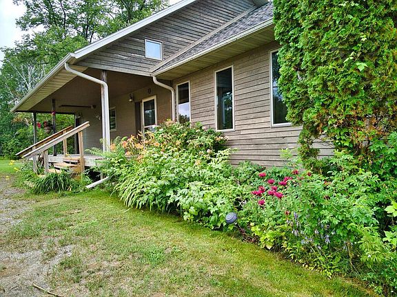 Check out the video tour! This 5 bed, 5 bath former honey farm is sweet as they come! 18 acres overlooking Round Lake, a 2,800+ acre walleye powerhouse, with your own private access from the Dunbar River. No lakeshore taxes! Timber frame house on ICF foundation was built using local cedar, pine, ash and aspen. High-speed fiber internet. Well-maintained geothermal HVAC system stays toasty or cool depending on the season, and the fireplace is a gathering spot on chilly nights. Septic is compliant. Spacious laundry and master ensuite are on the main floor (including tub and walk-in shower plus large his-and-her closets) making one-level living a breeze. Mostly finished lower level has endless opportunities for entrepreneurs looking for a workspace, as the French doors open wide for ingress/egress. The pole barn has extra-tall ceilings in the unfinished area and a food-grade insulated/heated workshop complete with a 1/2 bath. Add the sauna and high tunnel greenhouse - you may never leave!