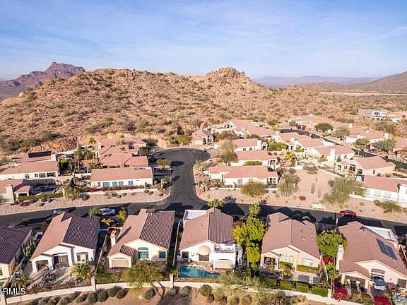 Rooftop Deck! Enjoy 360° views of the Phoenix skyline & the majestic surrounding mountains, perfect for sunsets, stargazing, & unforgettable gatherings. Vaulted ceilings & a bright, open-concept great room flow effortlessly into a granite countertop kitchen w/a dining nook & island bar. Cozy Comfort: Three fireplaces create a warm, inviting ambiance. 2023 carpeting and all 2019 appliances included. The oversized 2-car garage provides ample storage w/built-in cabinets. Outdoor Paradise: The backyard features a heated pool, gas-BBQ, & screened patio for year-round entertainment. Nestled in the vibrant Red Mountain Ranch community, minutes from freeway access, shopping, entertainment, Tonto National Forest, Saguaro Lake, & Salt River, with hiking & biking trails just steps away. Updates: 2023 carpeting, removed/replaced front driveway, replaced landscaping wires, water lines, & water system control box and replaced landscaping. Roof tiles repairs include recoating & tile replacements. New stainless steel natural gas outdoor grill.