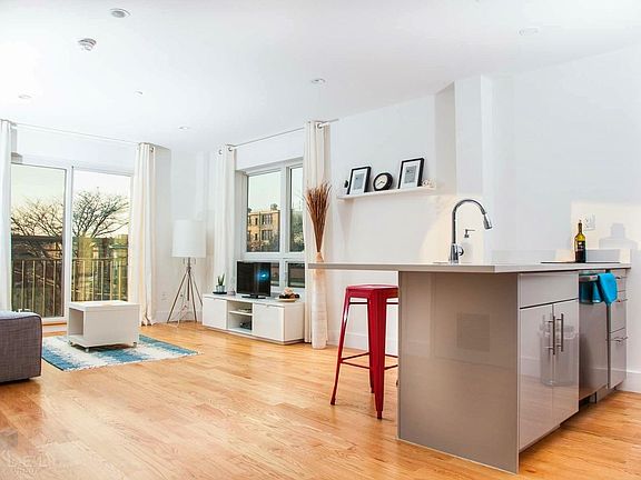 Welcome home to this gorgeous newly developed luxury building in Ridgewood. This is a very spacious 1 Bedroom 1 Bathroom apartment is fully equipped with hardwood floors throughout apartment. This unit has a beautiful eat in island kitchen, with quartz stone countertops, top of the line stainless steel appliances including a dishwasher and microwave. Manhattan skyline view! Corner unit sun drenched apartment, also features a french balcony.*Central A/C and Heat*Lots of Closet Space*Roof Deck*Bike Storage Room *Fitness Center/ Gym *Sorry no pets :(*Near M Trains *Close to Grocery Stores, Restaurants, and much more !