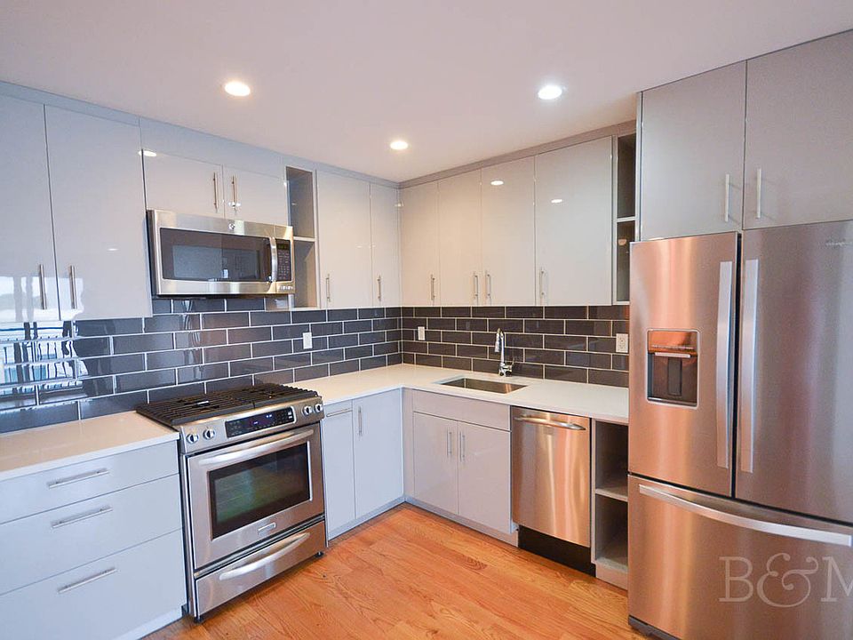 Carefree condo living in one of Fresh Pond Road's best condos. Upon entering this sunny unit you will feel right at home in this well maintained condo building. Entrance foyer with large closet opens into a sleek and modern kitchen, highlighted by a stainless steel appliance package with dishwasher and microwave. Custom gray lacquered cabinets are accented by an oversized ceramic subway tile backsplash and white quartz counters. The bright and spacious living room with its blond walnut hardwood floors has sliding glass doors and a juliet balcony. Bedroom features a large closet, oversized windows and walnut floors. Large ceramic tile bathroom has an oversized deep soaking bathtub, vanity with storage cabinets, and overhead heat lamp. If outdoor space is your thing, take the elevator up to the furnished roof deck with panoramic views of both the Manhattan and Queens skylines. Dual zoned heating and AC in the bedroom and living room, a color video intercom, and a Bosch washer and dryer in the apartment round out this well appointed unit. Near the Fresh Pond M subway station. Gated parking space available for an additional fee per month, and well worth it because parking in Ridgewood is at a premium these days. Building amenities included at no cost are a bike storage room, well equiped gym, pet grooming spa, and expansive roof deck. Explore and become a regular at all of the fabulous new and old school establishments that Ridgewood has to offer.