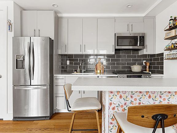 Welcome to one of the rarest finds in the vibrant neighborhood of Ridgewood. This stunning 835 sq ft two bed, one bath, top floor condominium apartment boasts an incredibly large (approximately 468 sq ft) private terrace, with views of nothing but sky. This outdoor oasis provides the perfect setting for al fresco dining, gardening, or simply unwinding after a long day, all while enjoying the fresh air and tranquility of your own personal retreat. The interior layout is thoughtfully designed and offers a perfect blend of comfort, style, and convenience. Upon entering you'll find an open living area and sliding glass doors that lead to your one-of-a-kind terrace. The kitchen is equipped with stainless steel appliances, including a gas stove and dishwasher. Custom light gray cabinets and a breakfast bar add a touch of sophistication, while the recently updated in-unit washer and dryer makes laundry a breeze. Both bedrooms are bathed in natural light and offer ample closet space. The primary bedroom easily accommodates a king-sized bed with plenty of room to spare, while the secondary bedroom fits a queen-sized bed. The bathroom boasts dual entrances, accessible from both the hallway and the primary bedroom, and has a deep soaking tub. Situated within the vibrant Ridgewood community, this elevator building is a rare gem, offering a fitness room, bike storage, a pet spa, a storage cage included with your apartment and a shared roof deck, providing breathtaking views of Manhattan. For those in need of parking, there is an option to rent a space for an additional fee. Transportation is a breeze with the M train located just a few blocks away, providing a quick two-stop connection to the L train. Ridgewood, recently voted Time Out's coolest neighborhood in NYC, boasts a vibrant dining and café scene, with favorites like Rolos, Julias, Honeymoon Coffee, and Norma's, ensuring you will have a plethora of places to explore. There is a 421A tax abatement in place until 2030 so you can enjoy over seven more years of incredibly low taxes. Don't miss the opportunity to make this exceptional Ridgewood residence your own.