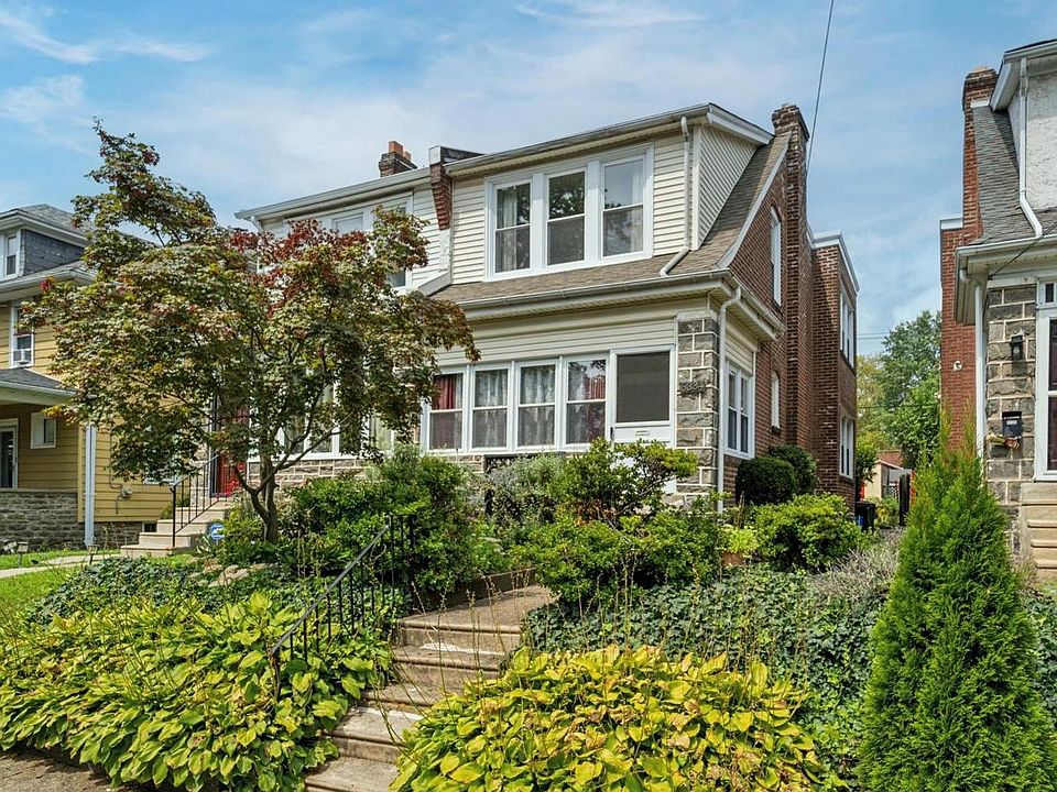 Welcome to this lovely and well cared for Lawndale twin! You are greeted by a wonderful sunroom entryway which is open to the living room and dining area. Just beyond the dining room is an equipped eat-in kitchen with access to a beautiful and private back garden. The first floor includes beautiful hardwood floors, a wood burning fireplace and coat closet. Upstairs you will find 3 light filled bedrooms, a hall bathroom and ample closet space. The finished basement offers lots of storage and a separate finished area which is currently used as an office. We can't forget the detached garage with driveway access. The back garden has a back porch just off the kitchen and is full of beautiful perennial plantings. Walking distance to Septa Lawndale train station. Don’t miss this opportunity to live and own this sweet well maintained twin with tons of upward potential.
