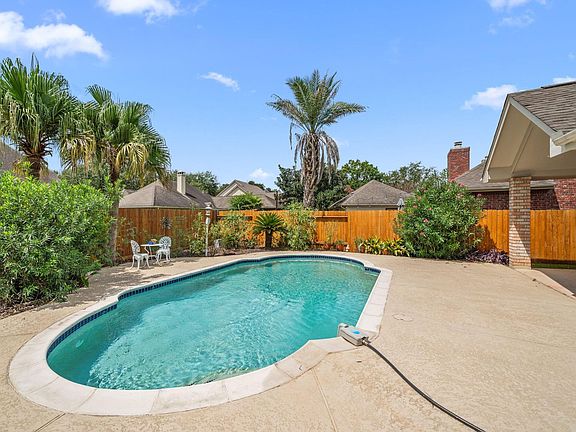 Two blocks away from highly rated Walker Station Elementary School, this family home has tons of architectural style, replaced windows, and a pool! No carpet - wood laminate, engineered wood, or tile floors. New interior paint in neutral cream color! Dramatic entry w/ two story ceiling, turned staircase, art niche, & columns flanking entrances to living & dining rms. Bright family room has wall of windows and opens to breakfast room. Fireplace and built-ins warm up the space. Breakfast room has a built-in desk for homework and a bar opening to kitchen. SS appliances including double ovens in kitchen. Primary bedroom has French doors to a covered patio. Elegant primary bathroom has a granite-topped island, separate vanities, oversized shower, jacuzzi tub, and updated brass light fixtures. Fun square windows in gameroom bring style and interest to the space. New water heaters 9/25, root barriers for front trees, and new driveway in 2023. Low maintenance back yard with resurfaced pool.