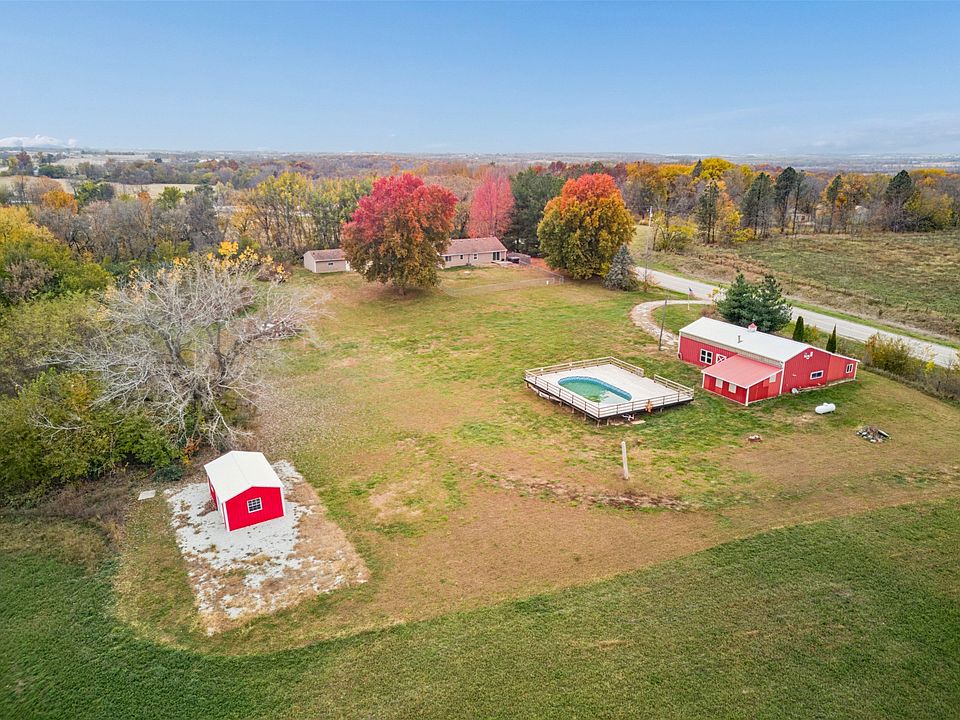 Easy 30-minute commute to Des Moines/WDM. This 1,200 sq ft ranch home offers 3 bedrooms and 1.5 baths with new vinyl siding and roof in 2015. Interior features include an updated kitchen and a fenced-in yard. Property sits on 9.5 acres with a newer shed and a 2-car detached garage. Enjoy outdoor living with a 16x20 above-ground pool and hot tub. The 40x50 outbuilding includes a working kitchen/bar area and bathroom—ideal for entertaining, hobby space, or shop use. Plenty of room for animals, gardening, and outdoor recreation. Country living with privacy and space to spread out, plus a short commute back to the Metro.