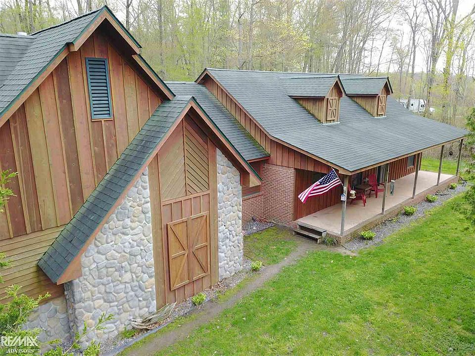 This house is a show stopper! This beautiful home is nestled on nearly 2 and a half acres of wooded solitude! Outside you'll find gorgeous cedar siding and brick, with a charming front porch, spacious deck, and pretty landscaping. The beauty of the outdoors carries through to the inside featuring cathedral ceilings, barn wood, hickory cabinetry, hardwood flooring and carpet, tile bathrooms and a jetted tub. A nice surprise is a bonus room above the garage for easy storage or a fun escape. 3 bedrooms, 2.5 bathrooms, a nice L shape kitchen with tiled counter tops overlooking a cozy dining area and a spacious great room with plenty of windows and a French style door leading to the deck. You'll feel at home!