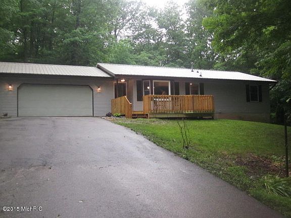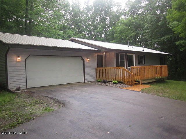 Sitting atop a hill, nestled in seclusion sits this solid 4 bedroom, 3 bath, ranch home on 5+ acres. Enjoy the woods from the front or back deck, but make sure you have your compass ready as this property is adjoined by 320+ acres of state land filled with wildlife. Bird watching will turn into deer hunting that turns into turkey chasing that turns into mushroom hunting. After that kind of day you will need a home to go to. This homes open concept main floor has Parquet floors, lots of light, loads of space and gorgeous views. The master suite has plenty of room for the King size bed and a large walk-in closet. Head down stairs and cool off to a family room walk-out with 2 large bedrooms. If you are looking for a great home in a private setting you have to take a look at this one. Call Jess Webb @ 616-350-7948 for a private viewing. Also included is a 1 yr. home warranty.