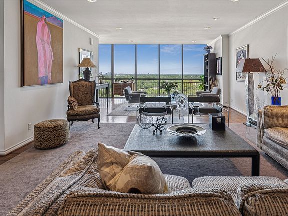 Luxurious Corner Residence with Soaring Views at The Athena. Experience timeless sophistication in this expansive corner unit at The Athena, one of North Dallas’ most iconic luxury high-rises. This impeccably maintained home is defined by its soaring ceilings, floor-to-ceiling windows, and sweeping panoramic views of the North Dallas skyline. A rare blend of elegance and comfort, the formal and informal living spaces are bathed in natural light—perfect for showcasing fine art or hosting both intimate gatherings and larger-scale entertaining. Rich parquet wood floors flow through the formal living and dining areas, a spacious den, and the guest suite, enhancing the warmth and style of the home. The kitchen features granite countertops, abundant cabinetry, and a charming breakfast nook—ideal for those who love to cook and entertain. The generously sized primary suite includes custom cabinetry, ample closet space, and a peaceful sitting area to unwind. As a courtesy to all residents the building is non-smoking, and no pets are allowed. Please see additional documents for helpful buyer information. Located in the heart of North Dallas, The Athena offers residents effortless access to Preston Center, NorthPark Center, and top-tier dining and shopping. Exclusive amenities include a year-round indoor pool, state-of-the-art fitness center, and stylish resident lounge.