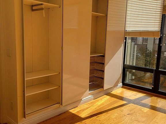 Building amenities include doorman, a fitness center, and a roof deck. On-site parking may be available for rent.
