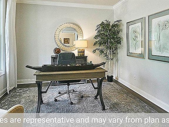 This home is the popular Washington -C plan. As you enter the home, you are greeted by an elegant 2-story foyer. Your ushered past the formal dining room w/coffered ceiling on one side and the study w/double doors the other side. Then it opens into the huge open family room, kitchen, and breakfast area. The ideal space for family gathering and / or entertaining. The gourmet style kitchen has upgraded appliances w/ gas cooktop, stainless steel vented hood, wall oven, & wall convection/microwave oven. Features include tile backsplash, granite countertops, 42" wall cabinets. Revwood engineered vinyl plank flooring covers all 1st floor common areas. Classic gray cabinetry adorns the kitchen. First floor flex room is ideal for guest or 2nd office. Second floor is host to primary suite, 3 secondary bedrooms, & bonus room. Primary suite walk-in closet is huge. Enjoy tree lined backyard from screened porch and extended deck. Ask about up to $10,000 closing cost. Photos are of a similar home.