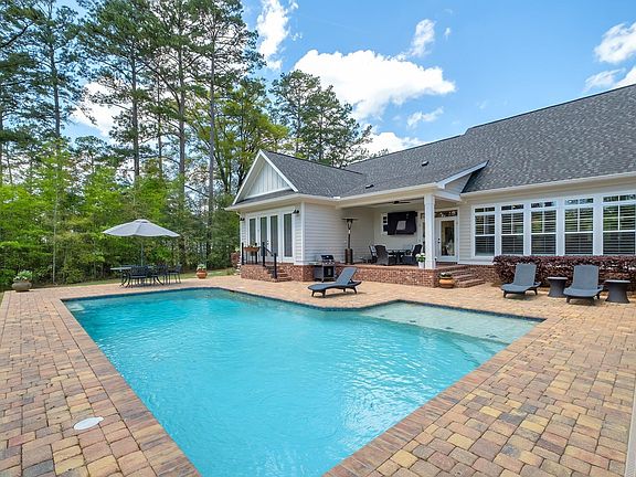 Exquisite 4 BR / 4.5 BA Waterfront Retreat in Centerville Conservation Community Don’t miss this rare opportunity—this stunning one-level Craftsman-style home with Mother In Law suite won’t last long! Nestled on a serene, kid-friendly private street with cul-de-sacs at both ends, this lakefront gem offers effortless living and timeless charm. Step inside to an inviting open floor plan, where a soaring, wood plank cathedral ceiling crowns the great room. Each of the four spacious bedrooms boasts generous closets and full baths, including a fully equipped mother-in-law suite with its own kitchen, living area, laundry closet, separate driveway, and carport—perfect for guests or multi-generational living. The living area warms up with a gas fireplace flanked by custom built-ins, while a dedicated office with matching built-ins provides a stylish workspace. Windows are adorned with elegant wide plantation shutters providing privacy while ensuring unobstructed lake views, adding a touch of sophistication. Storage abounds with a walk-in pantry featuring custom wood shelving, an additional shelved storage closet, and more. The outdoor oasis is a showstopper: a Gunnite salt water pool with removable baby guard fencing, a hot/cold pool shower, fire pit, and a covered back porch wired for water, electric, gas, and TV hookups. Enjoy three convenient access points to the backyard and pool, plus a handy half bath just steps from the water. Lush landscaping is effortlessly maintained with irrigation. Brick pillars and fencing along property, two driveways, and brick paver walkway added recently. Thoughtful upgrades include wood planked ceiling, hard wood floors throughout, high end custom lighting and fans from Visual Comfort and Arteriors, two Rinnai tankless water heaters, wired security and sound system, service contracts for termite detection, pool maintenance, lawn, and A/C/heating, ensuring peace of mind. This waterfront beauty combines luxury, functionality, and a prime location—schedule your showing today!