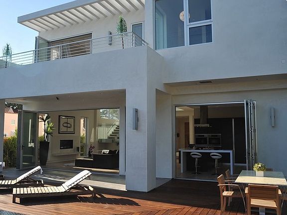 Retreat to this luxurious modern smart-home located in the heart of beloved Beverly Grove! Make this home yours & relish the premier location, moments from the iconic Grove & hottest shops, restaurants & entertainment on 3rd & Beverly. Sophisticated open floorplan beautifully accented by white oak floors, soaring ceilings & glass accordion doors for indoor/outdoor California living. Gourmet kitchen w/Miele & Thermador appliances, Ceasarstone counters, island & extensive cabinetry. Sumptuous master suite w/contemporary fireplace, walk-in closet, serene balcony & decadent bath w/rain & steam shower. Additional estate amenities include well-appointed guest suites, flex living with bath for extra suite (adding a wall to close-off space), skylights, security system and more. An entertainer's dream, the yard rivals those of 5-star resorts & boasts a sparkling pool, spa and patio space for lounging/dining al fresco all enveloped by lush greenery for maximum privacy.