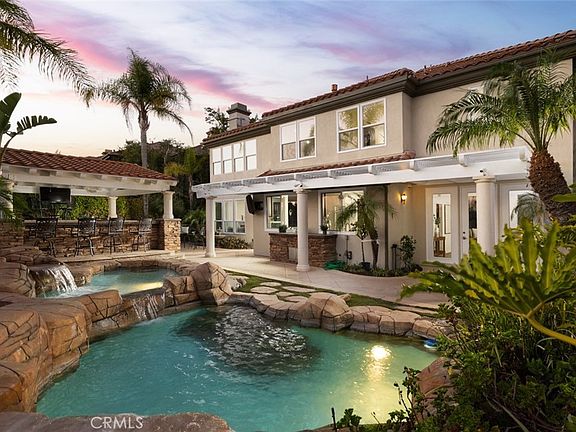 RENOVATED LUXURY HOME | PANORAMIC VIEWS | SPARKLING POOL & SPA | EN-SUITE BEDROOMS | GATED PARKRIDGE COMMUNITY | Welcome to 6336 E Cedarbrooks Avenue, a stunningly updated home located in the prestigious gated community of Parkridge in Orange. With five spacious bedrooms, five and a half bathrooms, and a separate office, this expansive two story property offers the perfect combination of elegance, comfort, and functionality, ideal for modern living and entertaining. Completely renovated with a designer’s touch, the home features fresh interior and exterior paint, brand new luxury vinyl plank flooring, plush new carpet, custom countertops, and beautifully remodeled bathrooms. From the dramatic curved staircase to the soaring ceilings and abundant natural light, every space has been thoughtfully refreshed with timeless style and quality. At the heart of the home is the oversized chef’s kitchen, complete with quartz countertops, rich wood cabinetry, a center island, and stainless steel appliances. It opens directly to a spacious family room with built-in speakers and walls of windows that showcase the lush backyard and hillside views. A formal living room with two story ceilings and a separate dining room provide even more space to gather. The flexible floor plan includes a downstairs en-suite bedroom, perfect for guests or multi generational living. Upstairs, each of the four additional bedrooms has its own private bathroom, offering privacy and convenience for every member of the household. The expansive primary suite features a wall of windows with panoramic views, a spa-inspired bathroom with dual vanities, soaking tub, walk-in shower, and two generous walk-in closets. Step outside to your private oasis, complete with a lagoon-style pool and spa, rock waterfalls, built-in BBQ bar, and multiple seating areas all surrounded by tropical landscaping and sunset views. Residents of Parkridge enjoy two private gates, a community pool and spa, sport court, BBQ areas, and access to nearby hiking and biking trails, shops, dining, and top rated schools. 6336 E Cedarbrooks Avenue is move-in ready and offers resort style living in one of Orange’s most coveted neighborhoods.