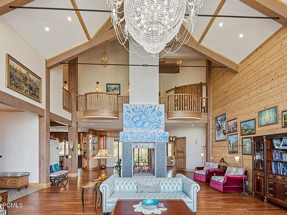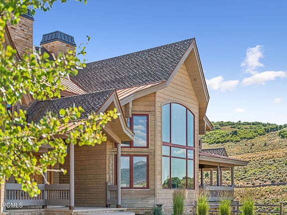 Privately perched on 4+ acres, this architectural masterpiece overlooks the renowned Rees Jones-designed golf course. Meticulously crafted by skilled artisans to blend old-world European elegance with modern luxury. Designed with intention, this Honka home features pine timber from Finland. The timber construction is natural, sustainable, and free from synthetic insulation. Throughout the home, custom Venetian lighting highlight the exquisite craftsmanship, while Walnut flooring on the main level, cork flooring upstairs offer warmth, and quiet refinement. The living room boasts soaring vaulted ceilings and expansive windows that frame breathtaking views. At its heart is a one-of-a-kind four-sided fireplace adorned with hand-painted designs. The elegant kitchen is a chef's dream, with custom walnut, maple, and glass cabinetry, a walnut countertop with iridescent blue inlay. Adding to its uniqueness is a custom Pechka and pizza oven, hand-built on-site. The extraordinary library is housed in a stone turret with curved walnut & maple doors and inlaid custom floors. Above it, an observatory serves as the home's crown jewel, equipped with a telescope & a retractable dome roof. For rest and rejuvenation, over 1,000 sq ft home spa awaits. The home features 3 luxurious primary suites, each with scenic views, soaking tubs, glass-enclosed showers, and spacious walk-in closets. The terrace level offers a spacious family room, a custom-designed fitness center, and a private office with its own entrance. Outdoor living is just as impressive, with a covered patio featuring a built-in grill and multiple balconies. A two-car garage and custom dog wash station complete the home. Victory Ranch is a gated community on over 6,250 pristine acres with 4 miles of private Upper Provo River access, offering a lifestyle of unmatched adventure and serenity.