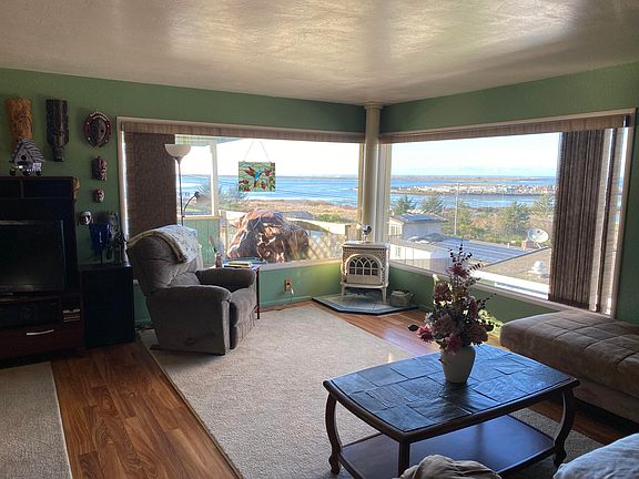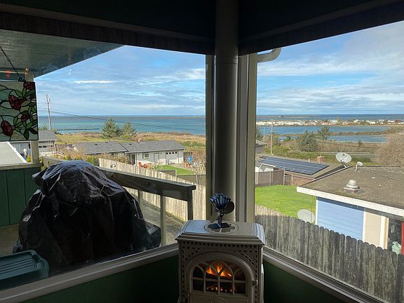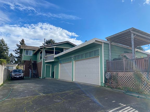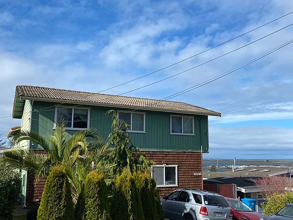 Million dollar bay and ocean views discounted for this lovely home above King Salmon with fantastic 180 degree views of the Bay and Bar opening to the Pacific Ocean as well as the city lights of Eureka. Large home with views from living room with gas fireplace a fantastic master suite with sitting room and views galore! Game room with lots of room for entertaining with gas stove fireplace.. Upper deck of dining room is covered with a hot tub to soak in the views. Large 4 car garage with shop and bonus space that can be developed for living or storage. Rear party deck behind garages that invites outdoor entertaining with stunning views.