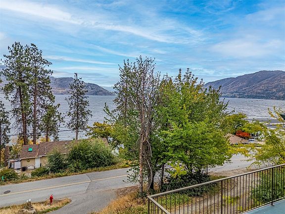 Calling all those who like a bit of a project with rich rewards!!  This 3-bedroom 2-bath grade-level entry home, built in 1991, is mostly original and needs some care. However it has a good lake view, and great potential!  The main level features an open kitchen to living room concept with a vaulted wood ceiling, parquet flooring, and a gas fireplace. The primary bedroom is spacious. At the front of the home is a room currently used as an office/den but could be a bedroom (would need a door). A full bath completes this floor. The lower level has a generous sized bedroom, full bath, a hobby room, laundry, and a large family room.  The foyer leading into the home is spacious, featuring an entry closet and newer tile flooring.  The furnace was serviced in 2024 and the hot water tank was replaced in 2025. The roof was done approx 12 years ago. The side yard is spacious, with a patio area and a newer shed. The driveway up is steep, but there is ample flat parking space at the top.  This is a great option for someone wanting an Okanagan lake-view home, but happy to put in some sweat equity if they want a more modern look!